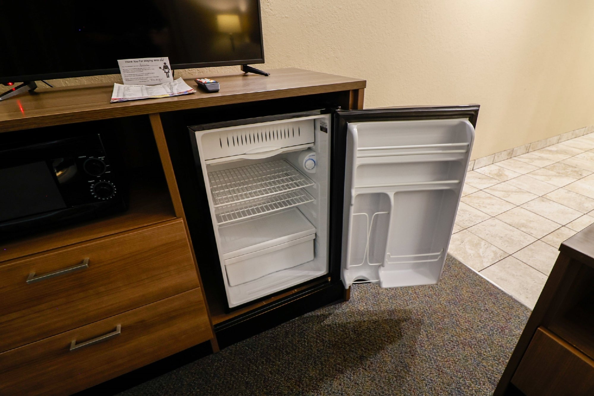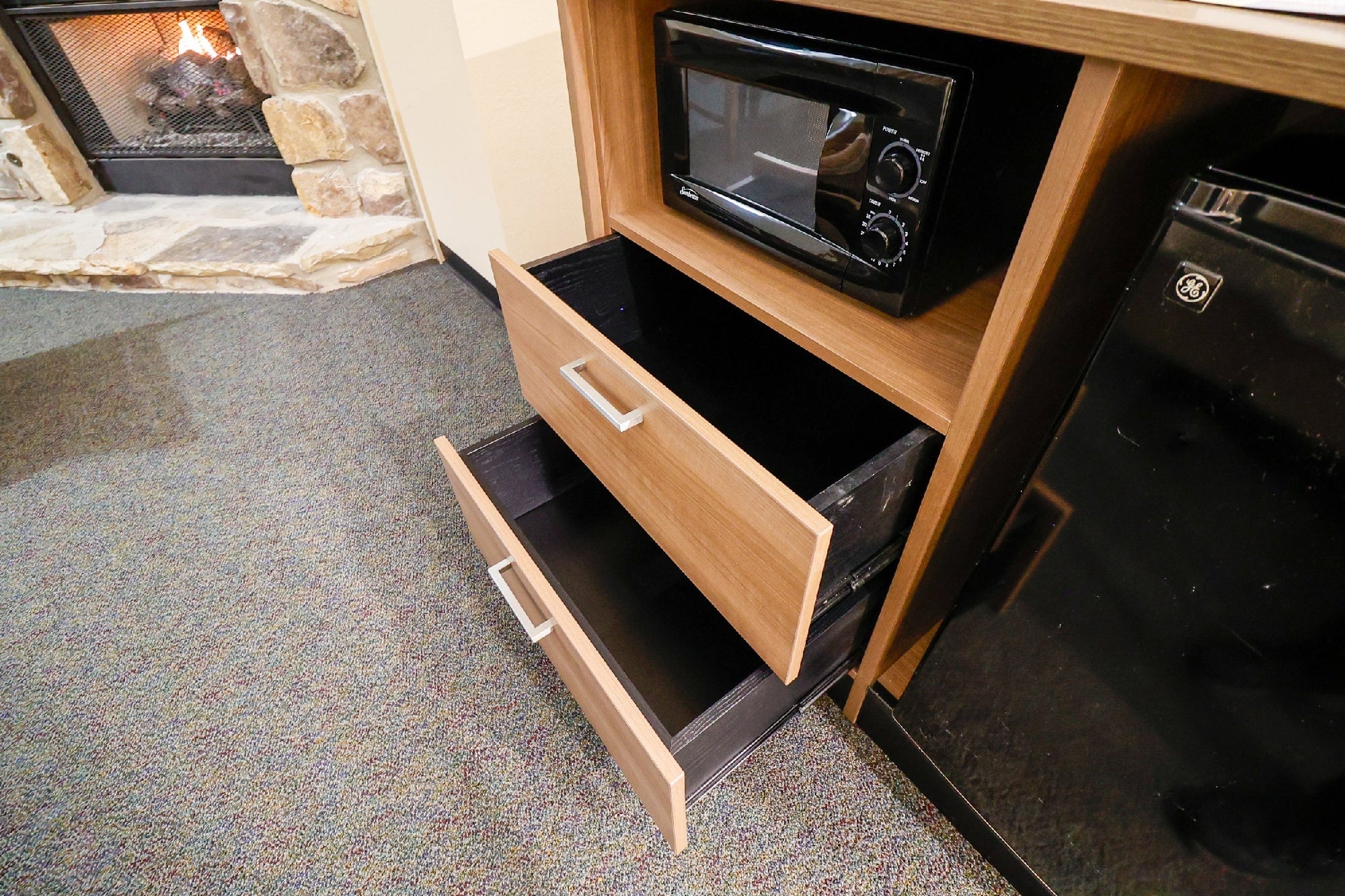 The hotel does not have a restaurant on site. There are plenty of dining options within walking distance or a short drive away, such as Texas Roadhouse, Cracker Barrel, The Old Mill Restaurant, The Local Goat, and more.
